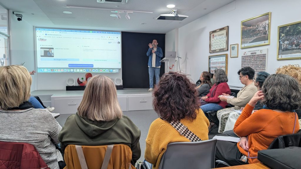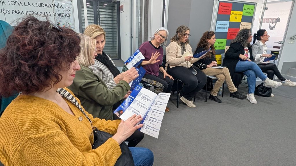 El taller «La Inteligencia Artificial segura y responsable al alcance de la Mujer Sorda», organizado por M10F, continúa con el segundo grupo a desarrollar del 17 al 26 en dos sesiones semanales. Las mujeres participantes demuestran interés por conocer a través de la formación del técnico Pedro González, las ventajas y los factores positivos y negativos del uso de las TIC y la Inteligencia Artificial.