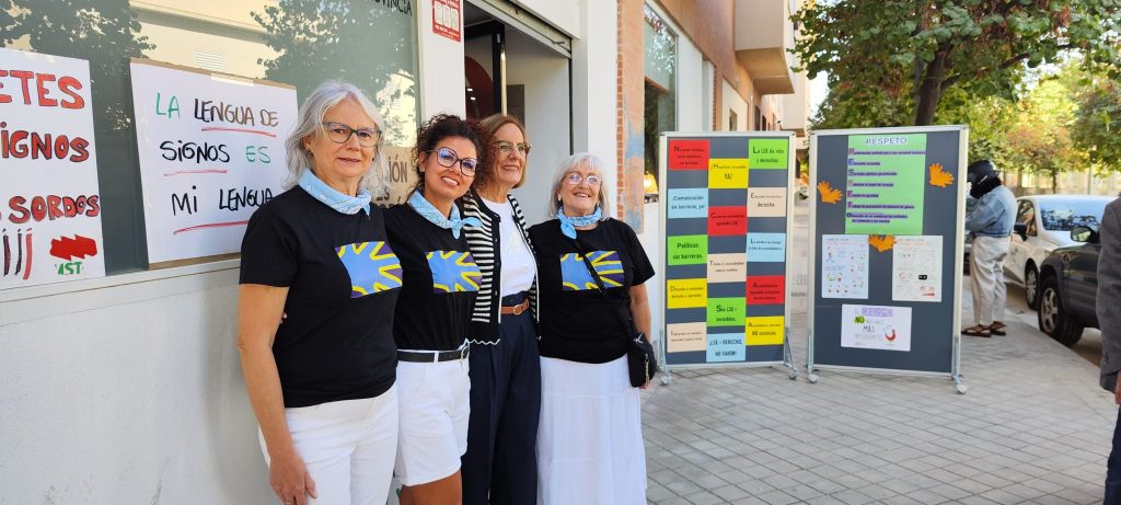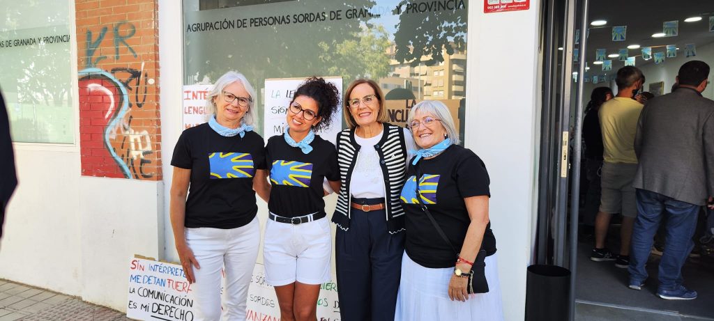 «Las integrantes del equipo directivo de M10F, acompañadas por la Delegada Territorial de Inclusión Social, Juventud, Familias e Igualdad de Granada, Matilde Ortiz, participaron en la conmemoración del Día Internacional de las Personas Sordas. Agradecemos profundamente su apoyo.»